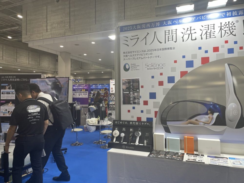 大阪・関西万博でも注目されている『 ミライ人間洗濯機 』で話題の、株式会社サイエンス の企業ブース。