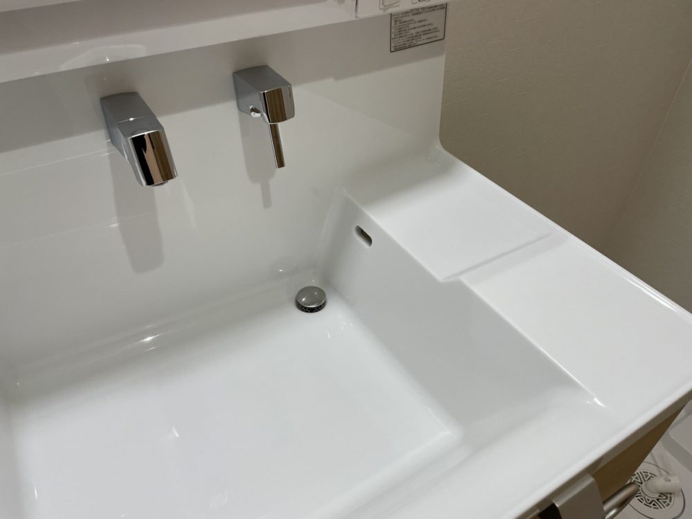 手洗いや洗顔で水を使う場所と、コスメや整髪料などを使う乾いた作業スペースを分けることが可能。