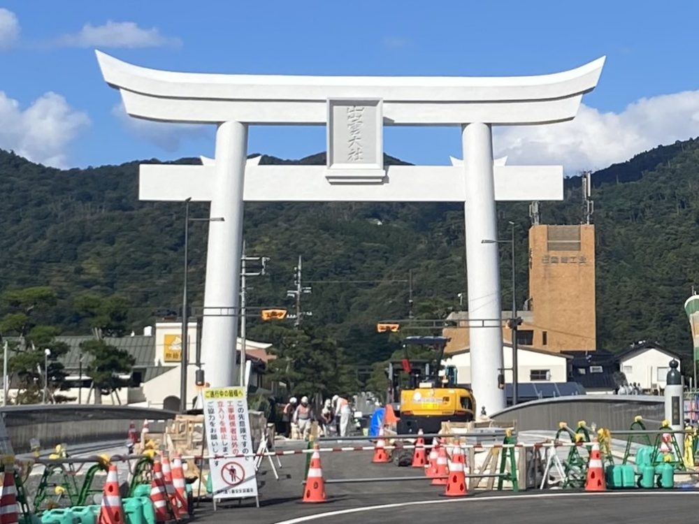 まず出迎えてくれたのは、白くそびえ立つ大鳥居。