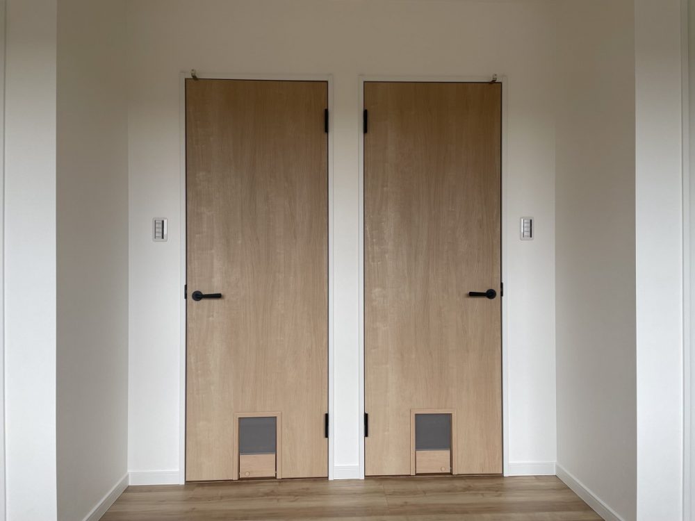 猫専用のくぐり戸が付いているため、ドアを閉めたままでも自由に移動が可能です。