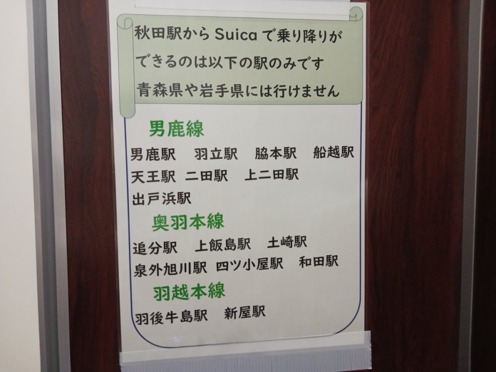 普段、都会で交通機関を利用していると少し信じがたいのですが、秋田県では交通系ICカードが使える駅はごくわずかに限られています。