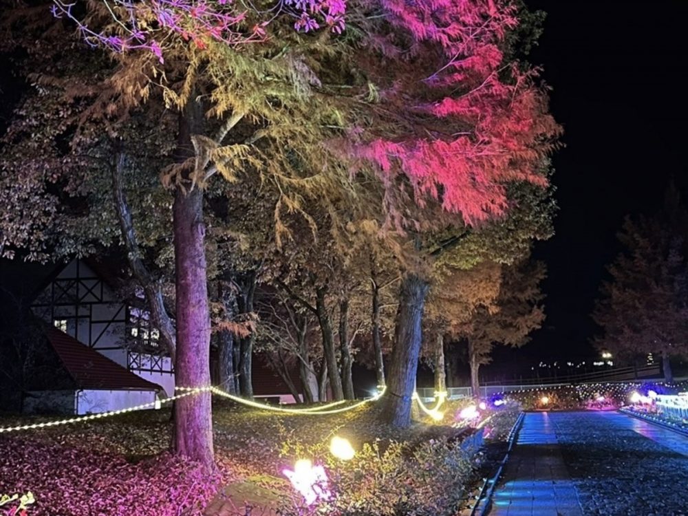 到着した頃にはすっかり辺りが暗くなり、ちょうど園内がライトアップされていました。
