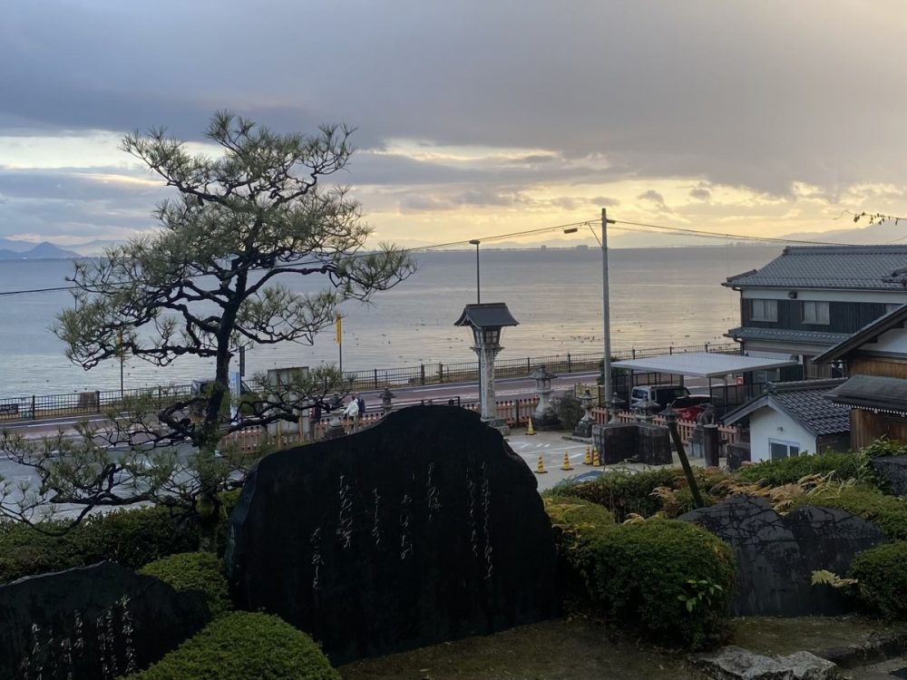 琵琶湖の穏やかな景色と相まって、静けさの中に神聖な空気が漂う場所でした。