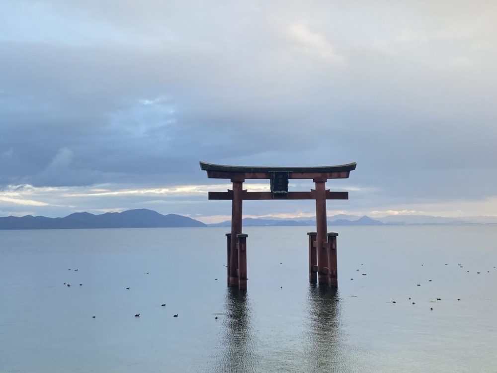 なかでも、湖の中に立つ朱色の鳥居は白鬚神社の象徴的な存在で、琵琶湖の景色と相まった幻想的な風景が印象的です。