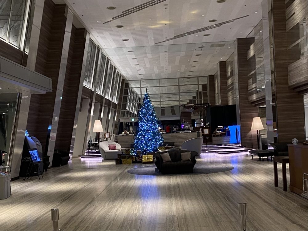 ホテルのロビーには、大きなクリスマスツリーが飾られていました。