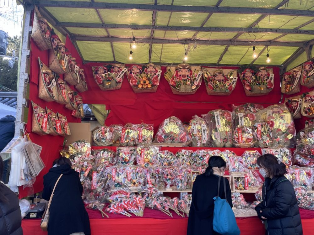 その通り沿いには多くの出店や縁起物の露店がずらりと並び、宵えびすらしい賑わいに包まれていました。