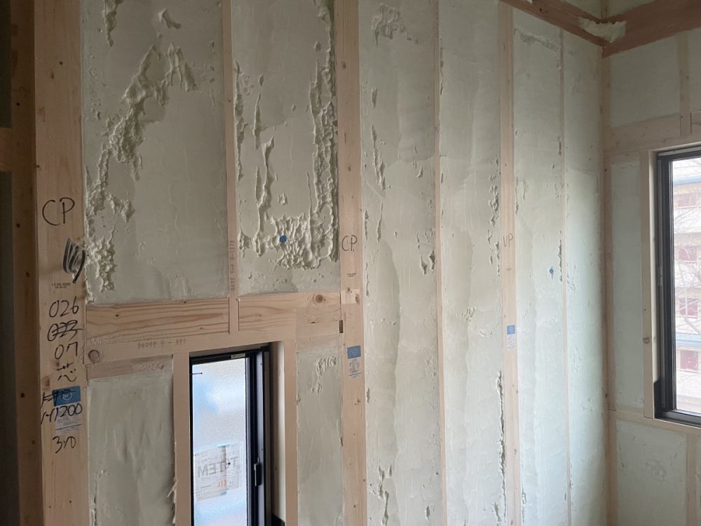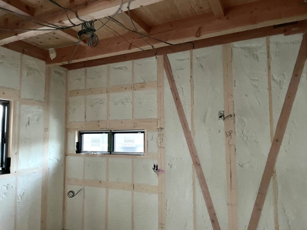 吹付断熱工事は、壁や天井が仕上がってしまうと見えなくなる工程ですが、住宅の性能を左右する非常に重要な工事です。
