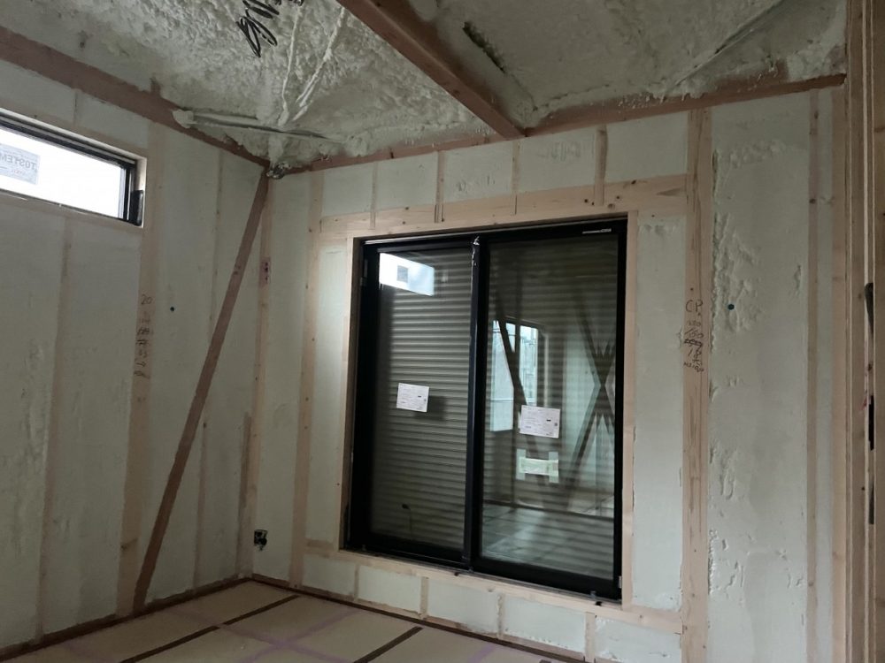 このたび、新築一戸建ての吹付断熱工事が終わりましたので、戸田さん、松山さんと一緒に現場確認に行ってきました。