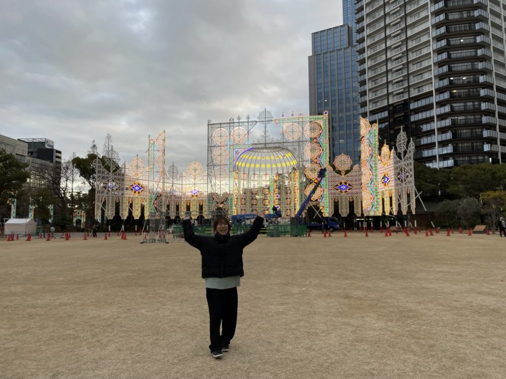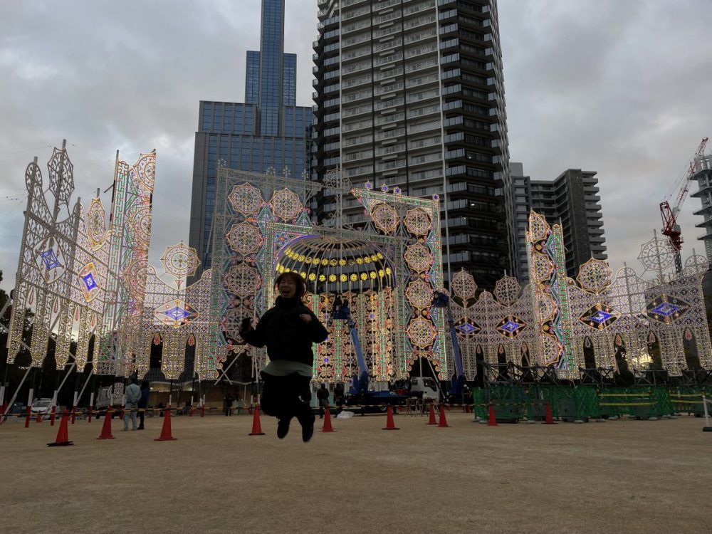 写真に写ったその瞬間は、この場所に立てた嬉しさと、ルミナリエが始まる前のワクワクがそのまま形になりました。