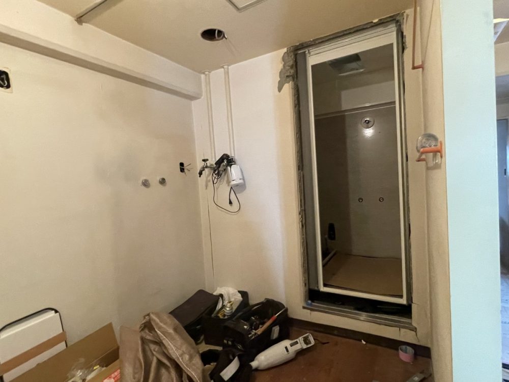 既存の浴室サイズが現在のユニットバスの規格と微妙に合わず、解体後に寸法を確認しながら調整する必要がありました。