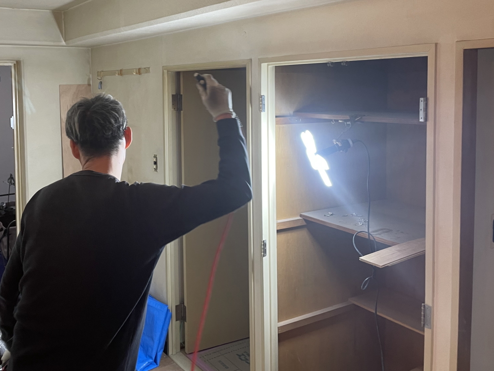 天井を開け、床をめくり、壁の中の状況を確認しながら進めていく作業です。