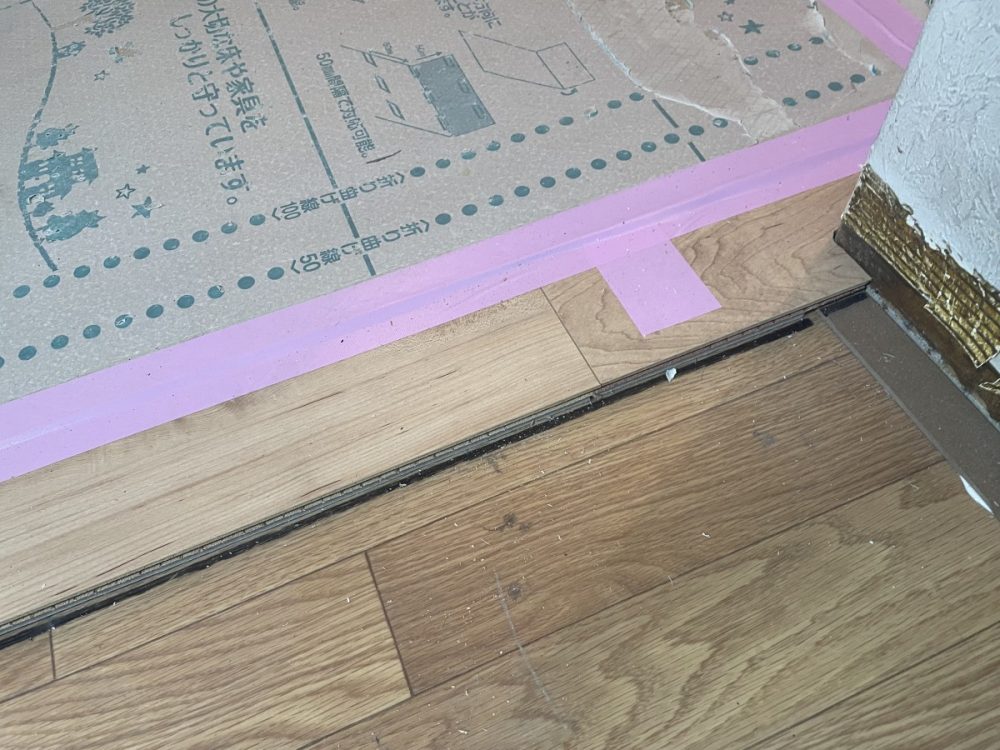 既存フローリングの上に新しい床材を施工する形で工事を進めています。