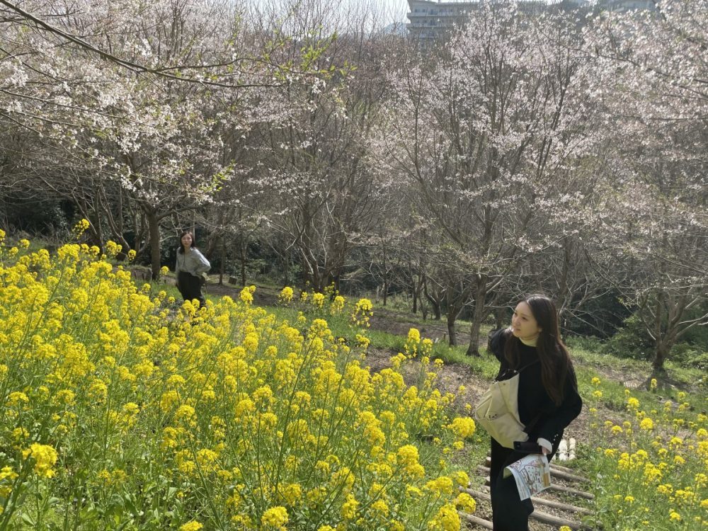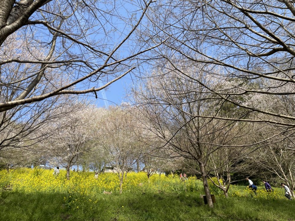 また、菜の花も見頃で桜のピンクと黄色のコラボがいい感じです。
