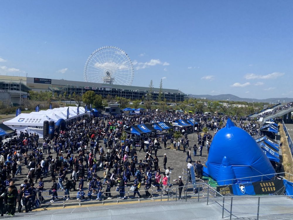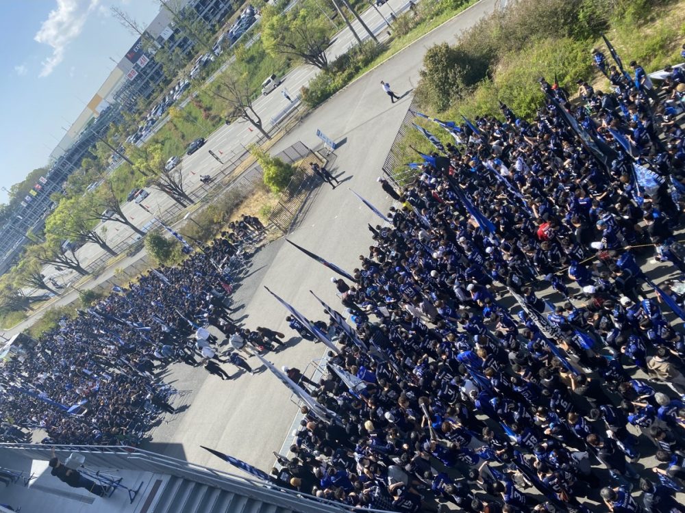 上から見た光景は圧巻で、今年も多くのガンバサポーターが集結していました。