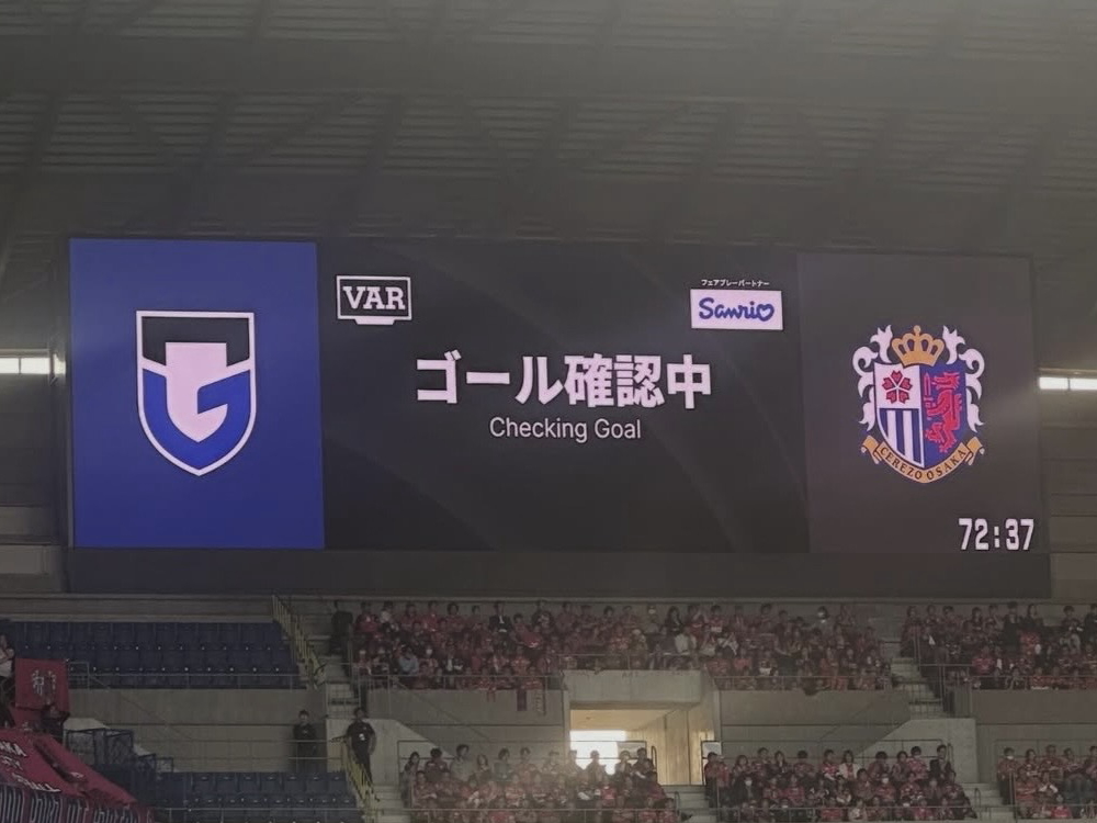 「 ゴール確認中 」のアナウンスに、スタンドは一気にざわつきます。