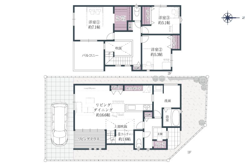 | 特徴 | 日当り良好、吹抜、24時間換気システム、住宅かし保険(10年間)、地盤保証(20年間)、住宅設備保証(10年) | ||