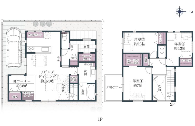 | 特徴 | 日当り良好、吹抜、24時間換気システム、住宅かし保険(10年間)、地盤保証(20年間)、住宅設備保証(10年) | ||